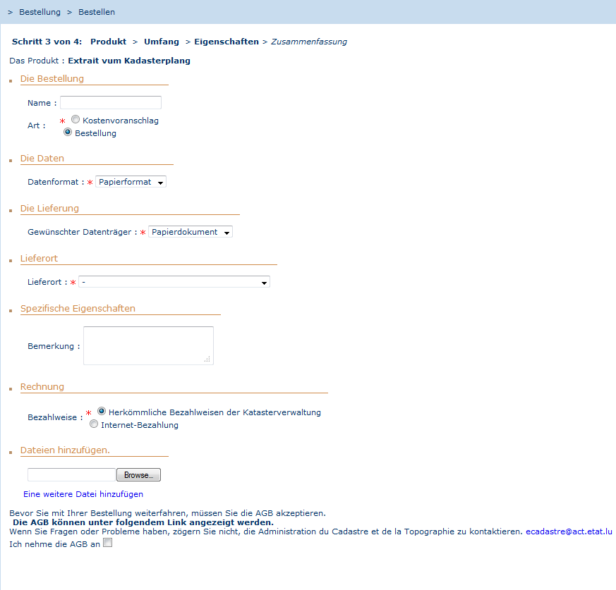 Nach der Auswahl Ihres Produkts und des benötigten geographischen Bereichs, müssen Sie nur noch einige Informationen über die Bestellung ausfüllen bevor die Bestellung abgeschlossen werden kann.