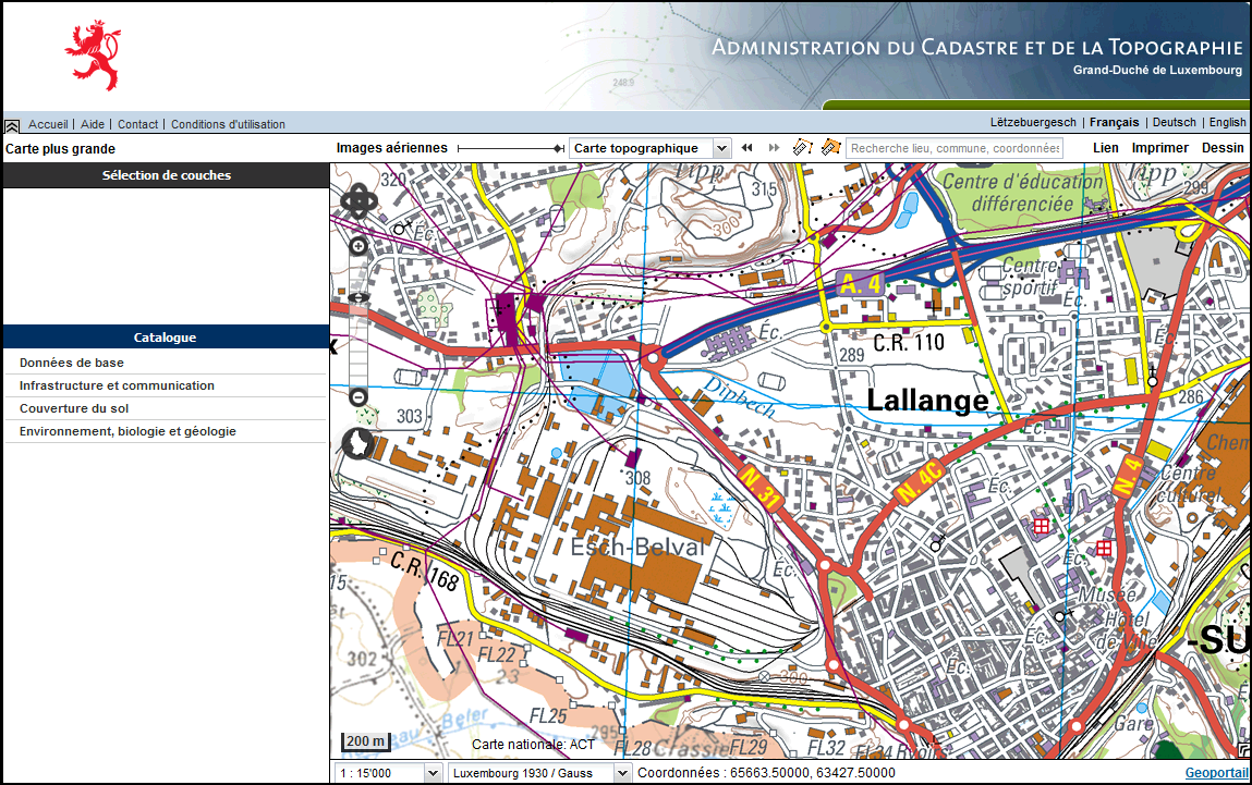 Le géoportail national du Grand-Duché de Luxembourg offre un nouveau guichet cartographique, qui est disponible depuis du mois de février 2010 sous l'URL http://map.geoportail.lu. Il s'oriente au grand public et offre les avantages suivants vis-à-vis du guichet cartographique d'origine:
