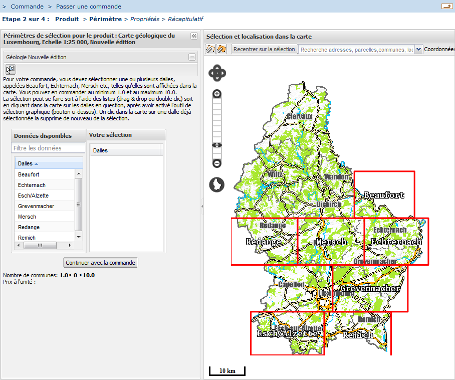 Comme on peut le voir, la carte est déjà divisée en plusieurs dalles que vous pouvez ajouter ou retirer de votre sélection.